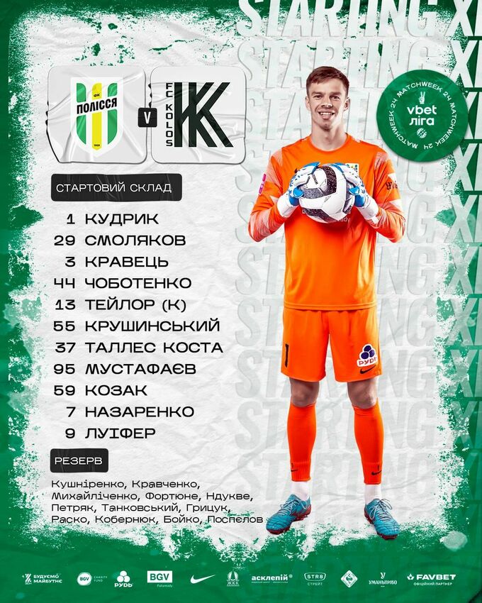 «Полісся»: Кудрик, Кравець, Чоботенко, Тейлор, Смоляков, Крушинський, Мустафаєв, Таллес, Козак, Назаренко, Луїфер