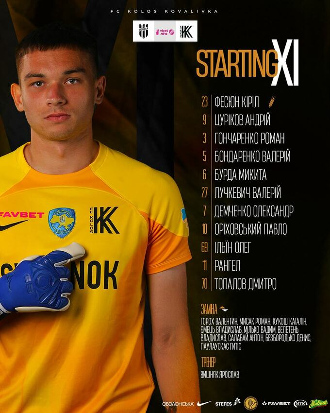 «Колос»: Фесюн, Цуріков, Гончаренко, Бондаренко, Бурда, Лучкевич, Демченко, Оріховський, Ільїн, Рангел, Топалов