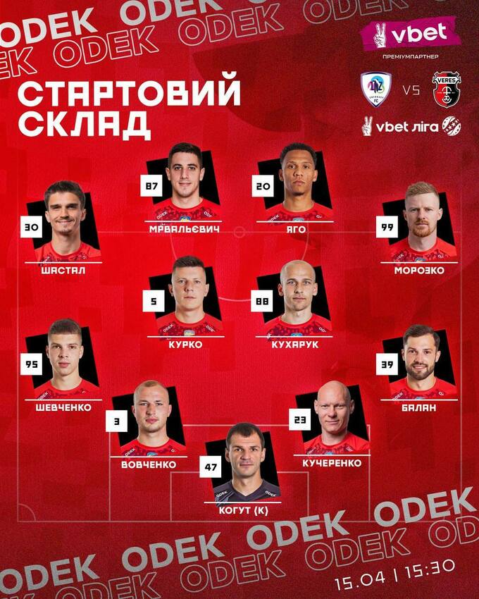 «Верес»: Когут – Шевченко (М. Шестаков, 82), Вовченко, Курко, Балан – Кухарук (Кльоц, 73), О. Кучеренко – Шастал (Дахновський, 73), Яго, Морозко (Шарай, 65) – Мрвальєвич (Гайдучик, 65).