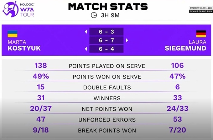 Марта Костюк (Україна) – Лаура Зігемунд (Німеччина) – 6:3, 6:7(4), 6:4