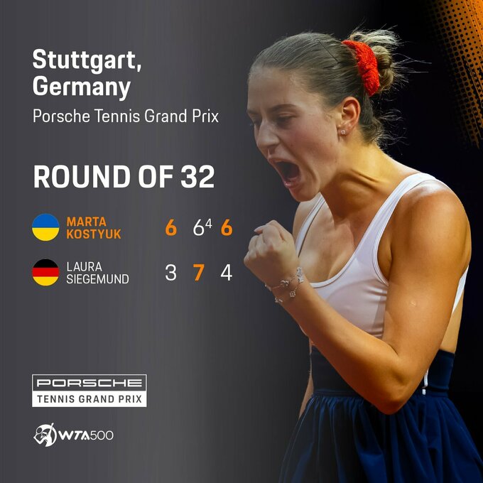 Українська тенісистка Марта Костюк (№27 WTA) успішно розпочала виступи на турнірі WTA 500 у Штутгарті (Німеччина).