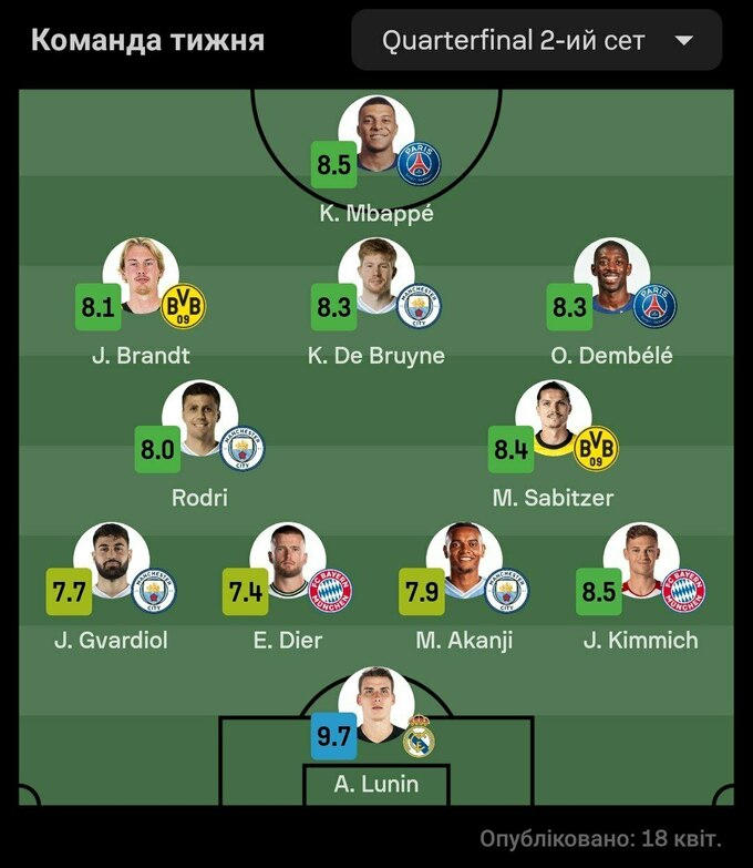 Українець потрапив у символічну команду тижня Ліги чемпіонів від WhoScored та SofaScore