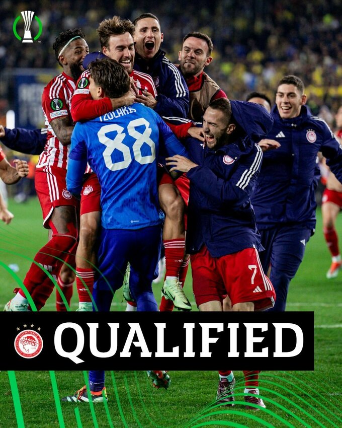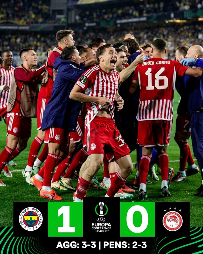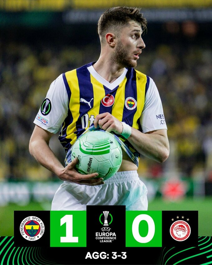 Грецький Олімпіакос пройшов турецький Фенербахче у серії пенальті. В основний час єдиний гол забив Ірфан Кахведжі на 11-й хвилині (1:0) і господарі поля в Туреччині відіграли гандикап, отриманий у першому матчі (2:3). Грецька команда була точнішою у серії пенальті (пен. 3:2) і вийшла до півфіналу Ліги конференцій.