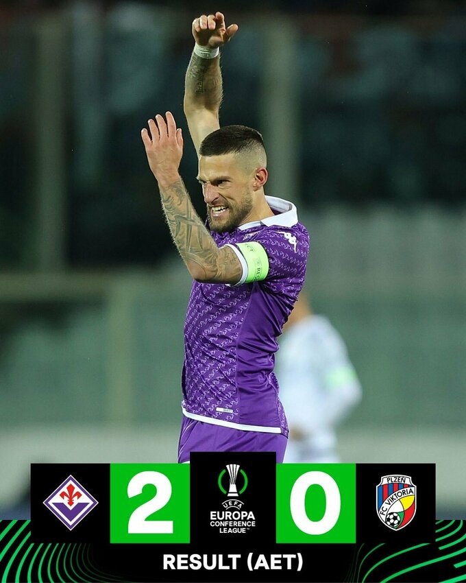 Італійська Фіорентина вдома обіграла Вікторію Пльзень (2:0 д.ч.). Гості грали у меншості з 66-ї хвилини. В основний час, як і в першій грі, голів не було забито (0:0). Долю матчу було вирішено в овертаймі, коли фіалки забили два м'ячі.