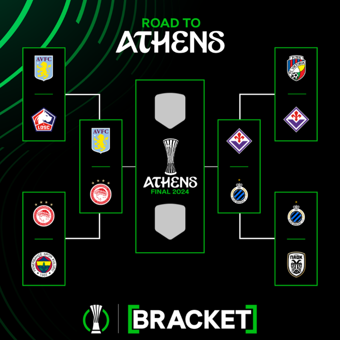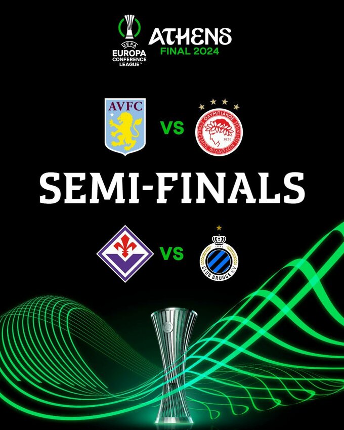 У півфіналах Ліги конференцій (2 та 9 травня) зіграють: Олімпіакос (Греція) – Астон Вілла (Англія), Фіорентина (Італія) – Брюгге (Бельгія).