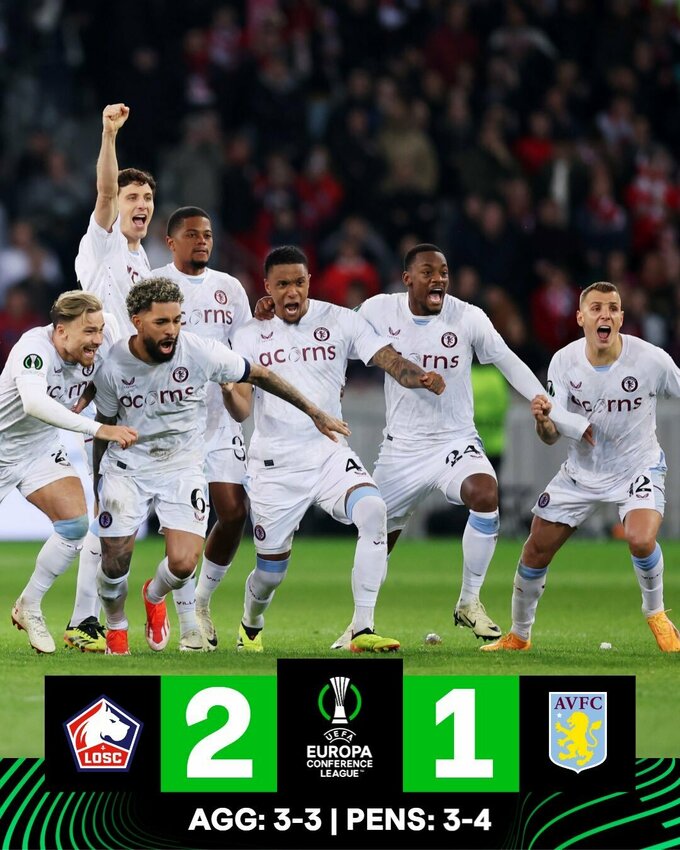 Астон Вілла пройшла Лілль у серії пенальті. У основний час французька команда виграла 2:1, ліквідувавши відставання, отримане у першому матчі (1:2). Воротар Астон Вілли Еміліано Мартінес відбив два удари в серії пенальті, і команда з Бірмінгема виграла протистояння (пен. 4:3).