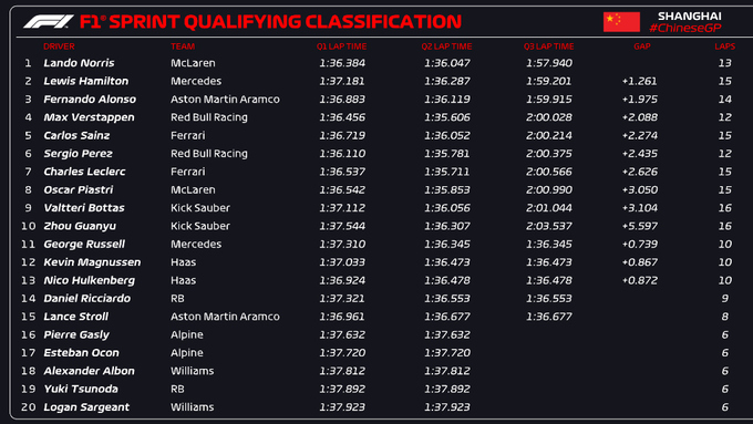 Ф-1 повернулася до Китаю. Сильний дощ, успіх Норріса у спринт-кваліфікації