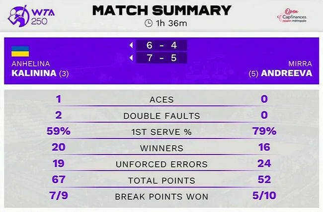 Ангеліна Калініна (Україна) – Мірра Андрєєва – 6:4, 7:5