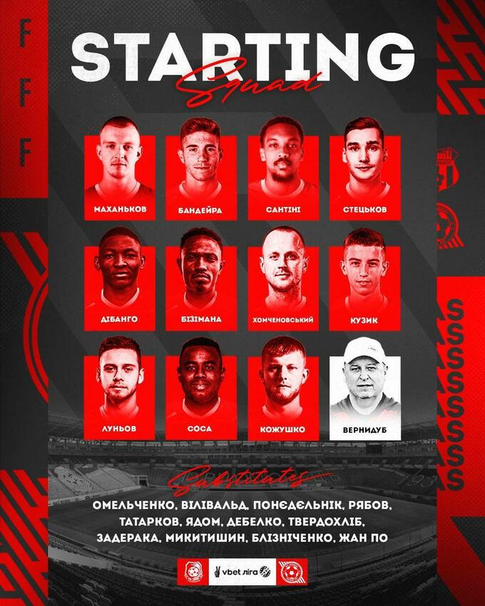 Запасні: Білик, Вічний, Шпорн, Присяжнюк, Арсич, Ситников.