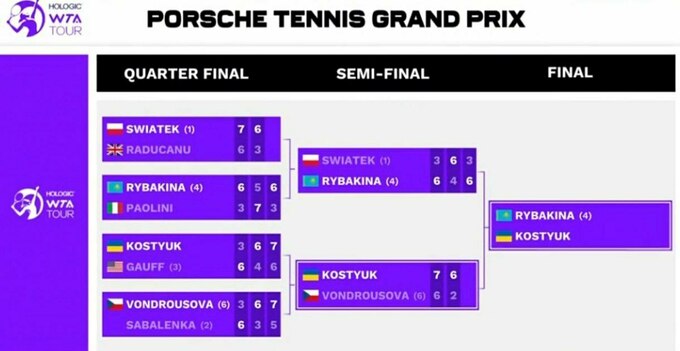У фіналі змагань у Штутгарті Костюк зіграє проти 4-ї ракетки світу Єлени Рибакіної, яка у своєму півфінальному поєдинку вибила Ігу Свьонтек.