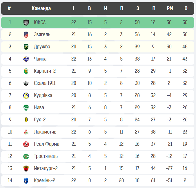 - 15:00. ЮКСА Тарасівка – Рух-2 Львів