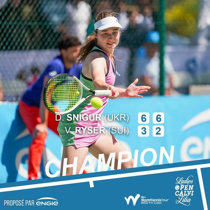Українська тенісистка Дар'я Снігур (№132 WTA) стала чемпіонкою на турнірі ITF W50 у Кальві (Франція).