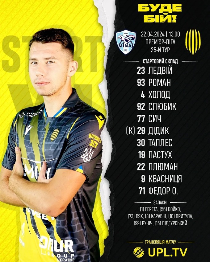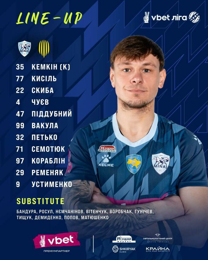 «Минай»: Кемкін – Піддубний, Скиба, Чуєв – Кисіль (Воробчак, 82), Петько, Вакула, Семотюк (Вітенчук, 78) – Кораблін, Ременяк (Гунічев, 63) – Устименко.