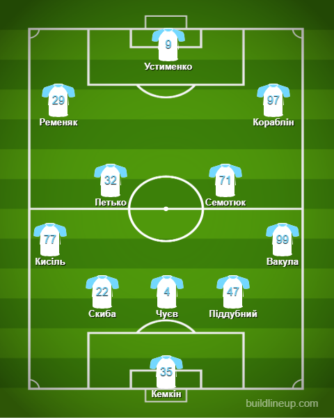 Запасні: Бандура, Росул, Нємчанінов, Тищук, Демиденко, Попов, Матюшенко.