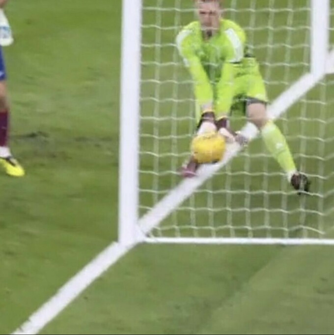 Лунін зумів винести м'яч зі стрічки. VAR довго перевіряв, чи м'яч перетнув лінію воріт, проте гол у підсумку не був зарахований.