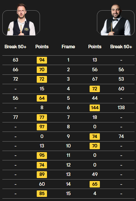 - Джадд Трамп (Англія) – Хосейн Вафаей (Іран) – 10:5