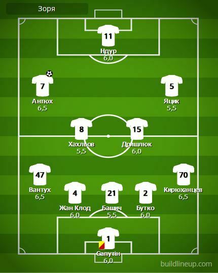 «Зоря»: Сапутін, Бутко, Башич, Жан Клод, Хахльов (Мишньов, 79), Дришлюк (Мічін, 92), Вантух, Яцик (В.Волошин, 95), Антюх, Кирюханцев (Турбаєвський, 91), Ндур (Горбач, 79).