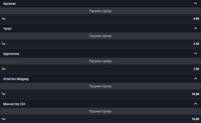 Коефіцієнт на те, що українець стане гравцем лондонського «Челсі», так само становить 2.50.
