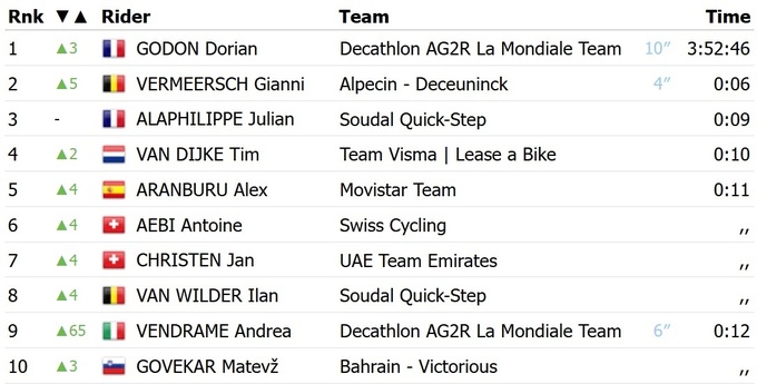 Французький велогонщик команди «Decathlon Ag2r» Доріан Годон став переможцем першого етапу престижної швейцарської багатоденки Світового туру Тур Романдії. Це дозволило йому очолити загальний залік.