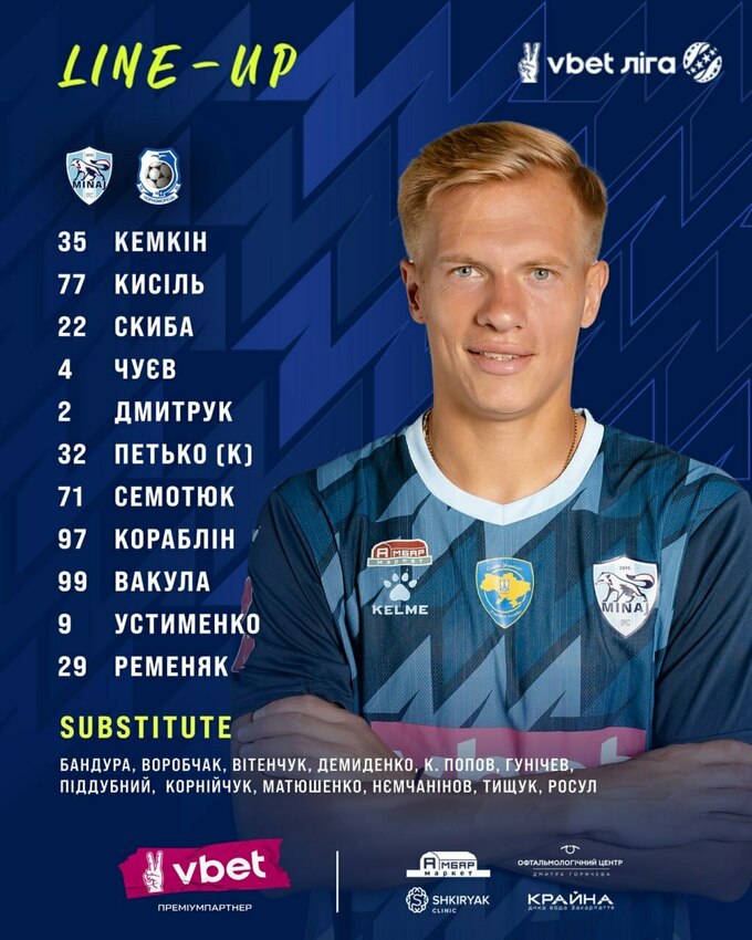 «Минай»: Кемкін – Кисіль, Чуєв, Скиба, Дмитрук – Петько (Вітенчук, 67), Семотюк (Матюшенко, 77), Кораблін (Корнійчук, 78) – Вакула, Устименко, Ременяк (Гунічев, 63).