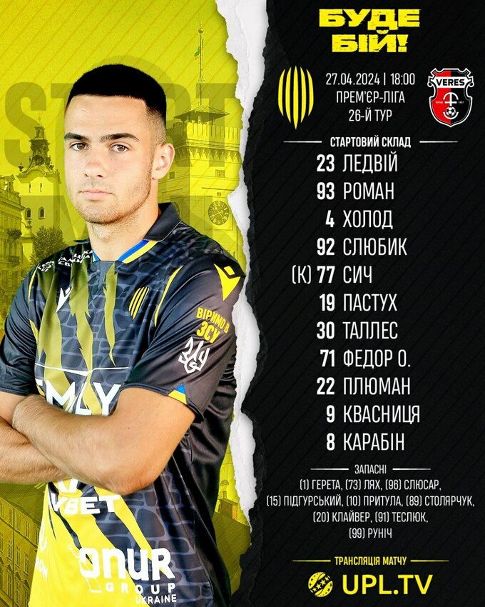 Запасні: Герета, Столярчук, Клайвер, Теслюк.