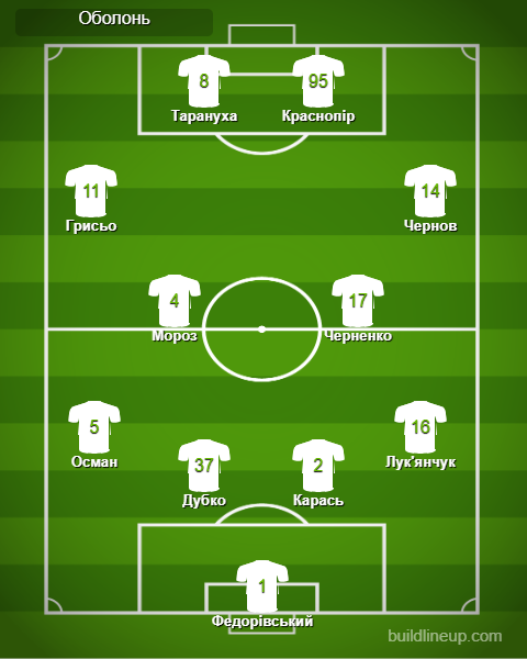 «Оболонь»: Федорівський – Осман (Суханов, 72), Дубко, Карась, Лук'янчук (Нагієв, 72) – Грисьо (Мединський, 46), Мороз (Косовський, 60), Черненко, Чернов (Прокопенко, 55) – Тарануха, Краснопір.