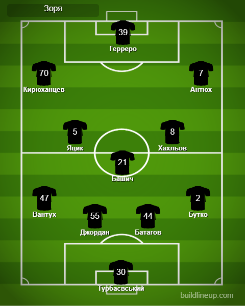 «Зоря»: Турбаєвський – Джордан, Батагов, Вантух, Бутко – Хахльов (Дришлюк, 62), Яцик (Горбач, 46), Башич (Мишньов, 79) – Кирюханцев (Жуніор Рейс, 62), Антюх (Мічін, 62) – Герреро.