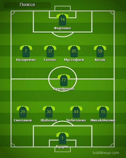 «Полісся»: Кудрик, Шабанов, Чоботенко, Смоляков, Михайліченко, Кушніренко (Ндукве, 87), Таллес (Танковський, 62), Мустафаєв, Козак (Петряк, 62), Назаренко, Фортюне (Грицук, 92)