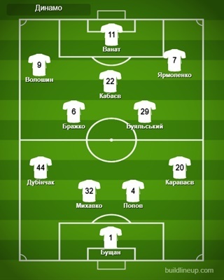 «Динамо»: Бущан – Дубінчак, Попов, Михавко (Сирота, 46), Караваєв, Бражко, Буяльський (Беніто, 86), Кабаєв (Царенко, 86), Волошин, Ярмоленко (Шепелєв, 66), Ванат (Пономаренко, 76).