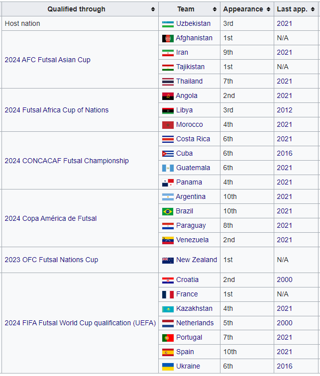 Стали відомі всі учасники фінального турніру чемпіонату світу з футзалу 2024 року, який у період із 14 вересня до 6 жовтня відбудеться в Узбекистані.