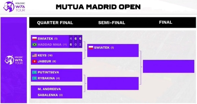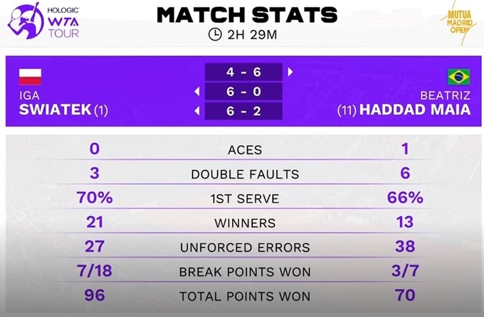 Іга Свьонтек (Польща) – Беатріс Хаддад Майя (Бразилія) – 4:6, 6:0, 6:2