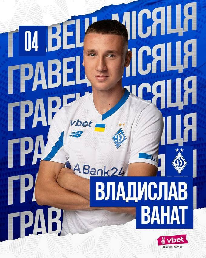 Київське «Динамо» назвало найкращого гравця клубу у квітні. Нагорода дісталася 22-річному українському форварду Владиславу Ванату. Він переміг у голосуванні вболівальників, набравши 38% голосів.