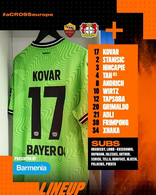 «Баєр»: Коварж – Тапсоба, Та, Станішич – Інкап’є, Джака, Андріх, Фрімпонг (Паласіос, 88) – Грімальдо (Коссуну, 90+3), Адлі (Телла, 77), Вірц (Гофманн, 77).