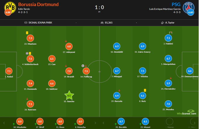 Оцінки WhoScored за матч Боруссія Д – ПСЖ – 1:0