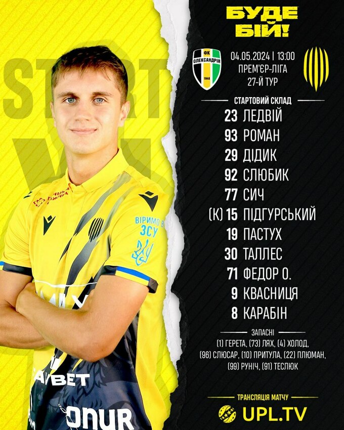 У суботу, 4-го травня, відбудеться поєдинок 27-го туру Української Прем'єр-ліги, у якому змагатимуться «Олександрія» і львівський «Рух». Матч відбудеться в Олександрії, на полі стадіону КСК «Ніка», початок о 13:00.