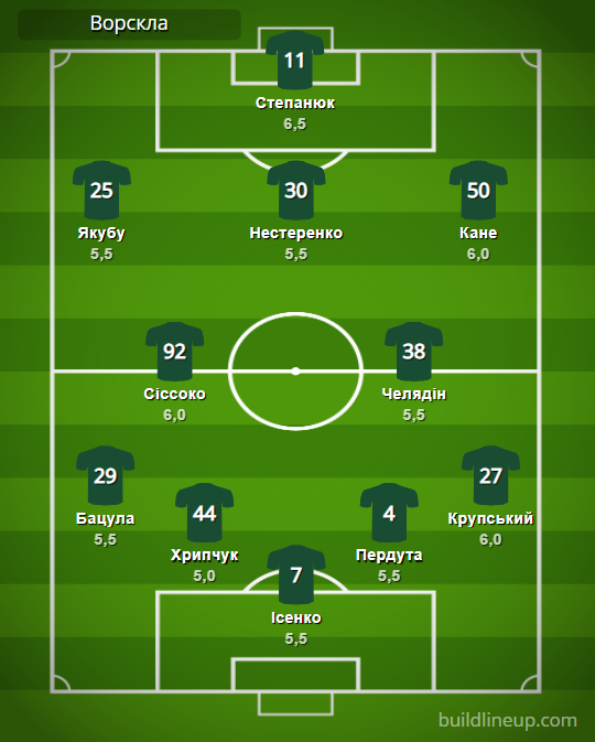 «Ворскла»: Ісенко – Бацула, Хрипчук, Пердута, Крупський – Сіссоко (Глущенко, 75), Челядін (Скляр, 59) – Якубу (Корнієнко, 46), Нестеренко (Мякушко, 59), Кане (Феліпе, 75) – Степанюк.