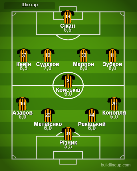 «Шахтар»: Різник - Конопля, Ракіцький, Матвієнко, Азаров - Марлон (Степаненко, 75), Криськів (Назарина, 82) - Зубков (Швед, 75), Судаков, Кевін (Невертон, 75) - Сікан (Егіналду, 68)