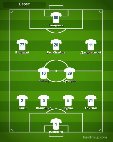 У Вереса замість Шарая, Дахновського та Яго вийшли Шастал, Морозко та Кухарук.