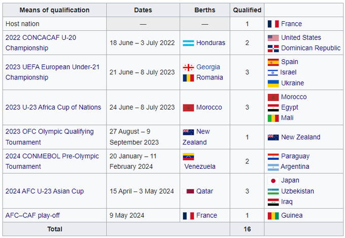 The men's football team have secured their ticket for #Paris2024. 👏 They join 15 other qualified nations playing for gold in France. 🥇 Tickets are available from https://t.co/Qeii6dF3RS.#RoadToParis2024 #OlympicQualifiers