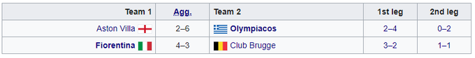 9 травня. Олімпіакос (Греція) – Астон Вілла (Англія) – 2:0 (перший матч – 4:2)