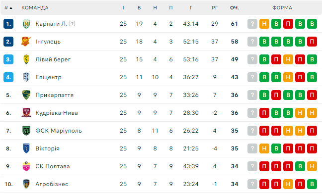 Турнірна таблиця