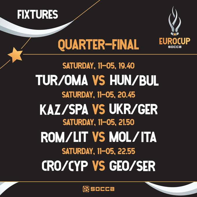 11 травня о 14:15 у Кишиневі проходить матч 1/8 фіналу чемпіонату Європи 2024 із socca між збірними України та Німеччини.