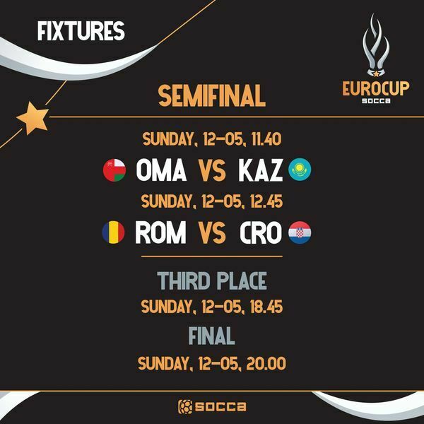 Півфінали та фінали відбудуться 12 травня. У 1/2 фіналу зустрінуться: Оман – Казахстан, Румунія – Хорватія.