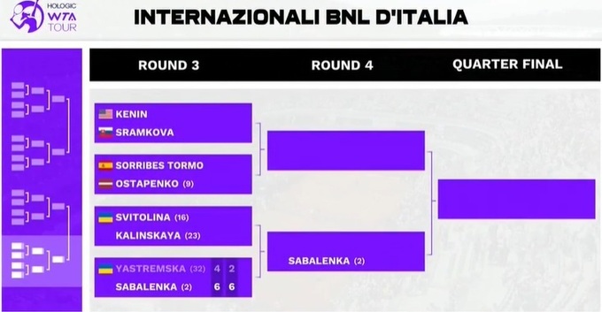 У наступному раунді Соболенко гратиме з Еліною Світоліною (№19 WTA) або Анною Калінською (№26 WTA).