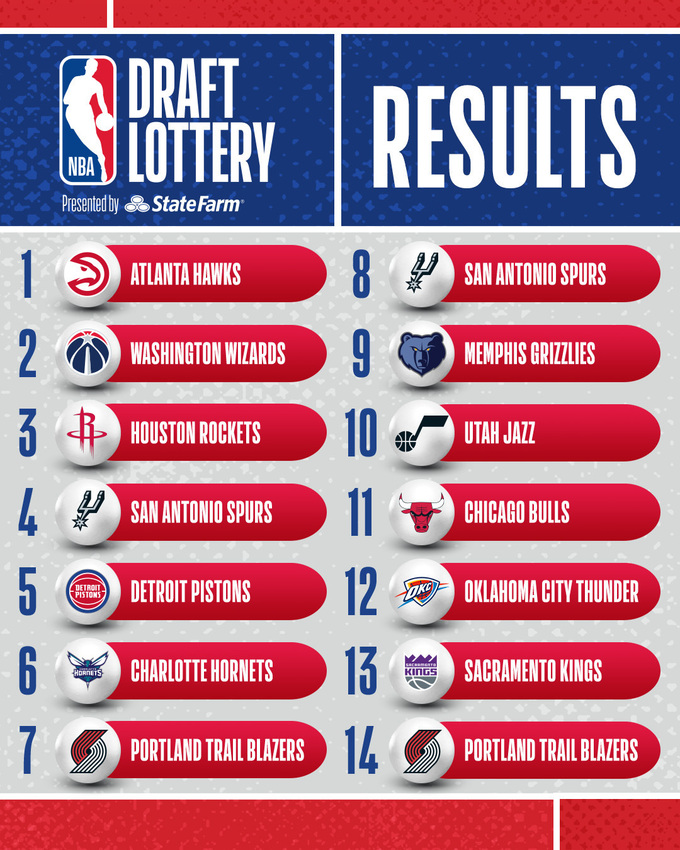 Лотерею драфту виграла Атланта Хоукс, хоча клуб, враховуючи позицію після регулярного сезону, мав лише 3% шансів взяти перший номер.