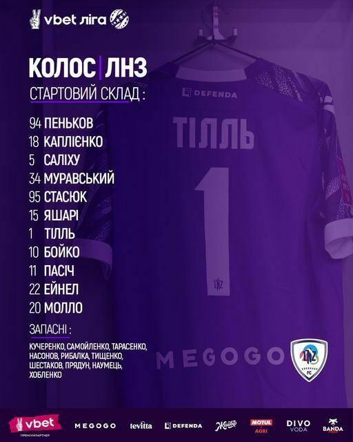 Запасні: Мисак, Пахолюк, Кукош, Поправка, Мілько, Дієго.