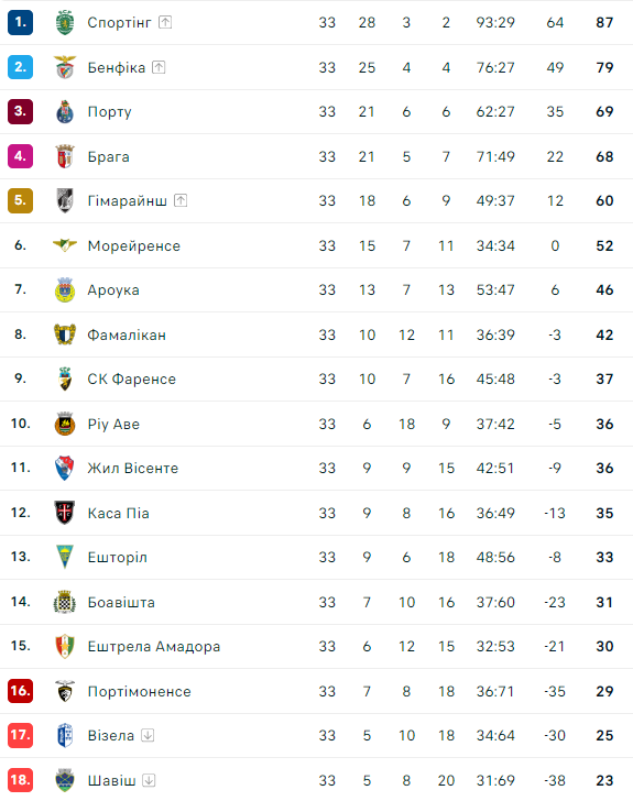 У рамках 33 туру чемпіонату Португалії «Бенфіка» на своєму полі впевнено розібралася з «Арокою». Гості отримали у свої ворота 5 голів.