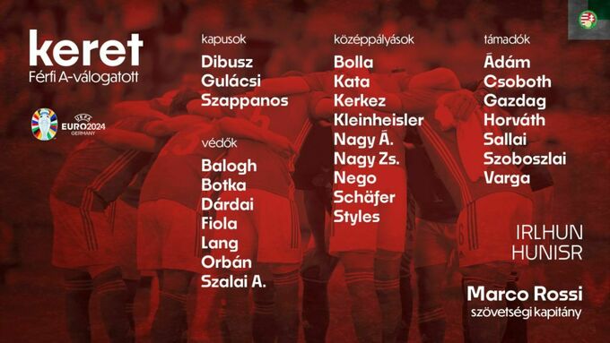 Збірна Угорщини стала першою командою, яка опублікувала заявку з 26 гравців на чемпіонат Європи. Угорці у групі зіграють з Німеччиною, Швейцарією та Шотландією.