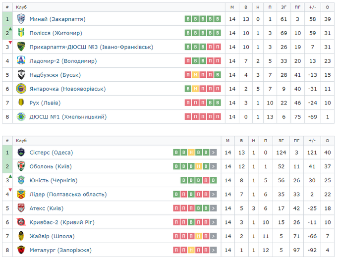 За підсумками 14 зіграних турів на стадії групового етапу найкращими командами в групах стали: «Минай», «Полісся» (Житомир), «Сістерс» (Одеса), «Оболонь» (Київ).