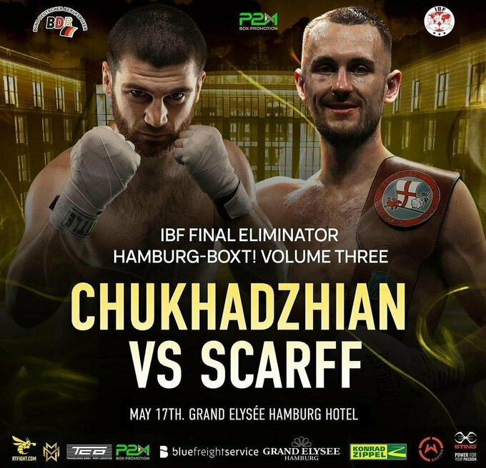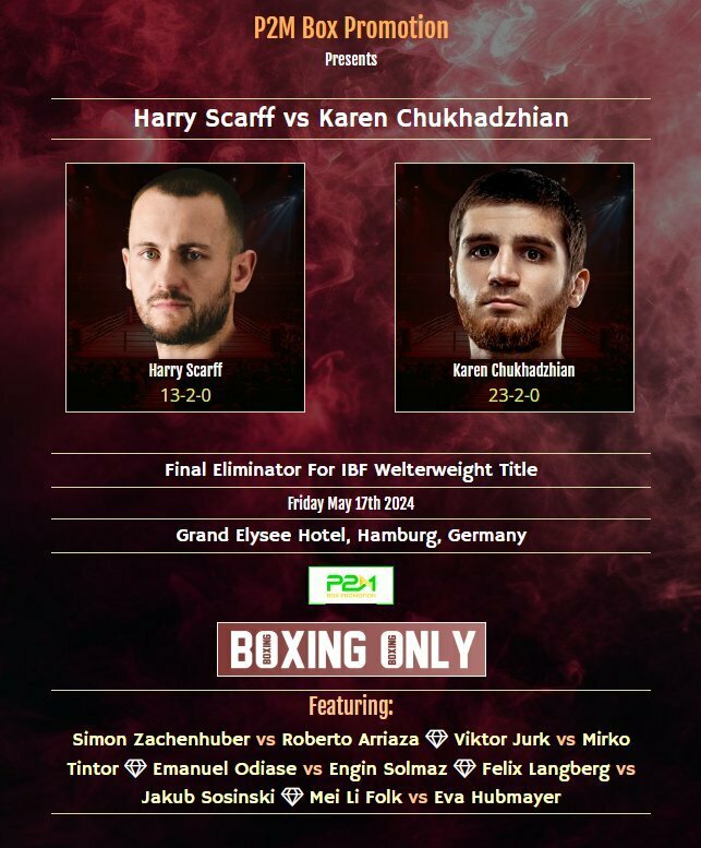 На ринг вийдуть українець Карен Чухаджян (23–2, 13 KO) та британець Гаррі Скарф (13–2, 3 KO)